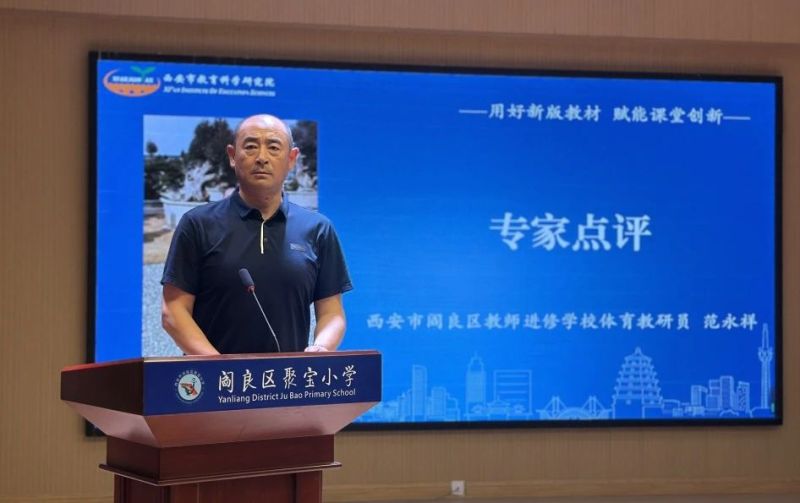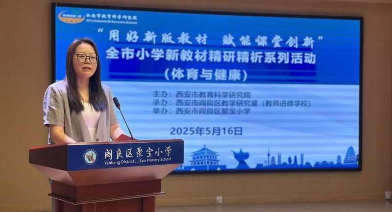2025年5月16日,閻良區教學研究室承辦的西安市“用好新版教材賦能課堂創新”全市小學新教材(下冊)精研精析系列活動(小學體育與健康),在閻良區聚寶小學成功舉辦。市教科院小學體育教研員王俊玲老師主持本次活動。