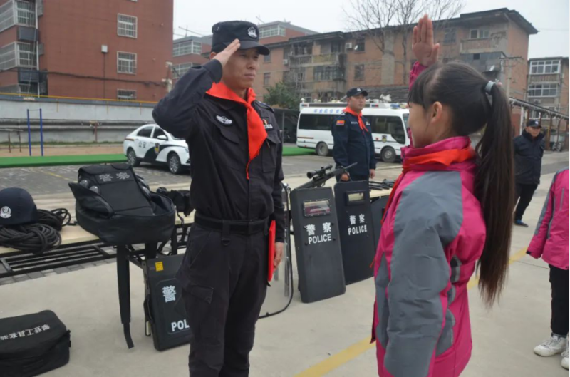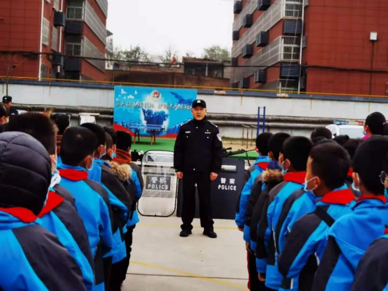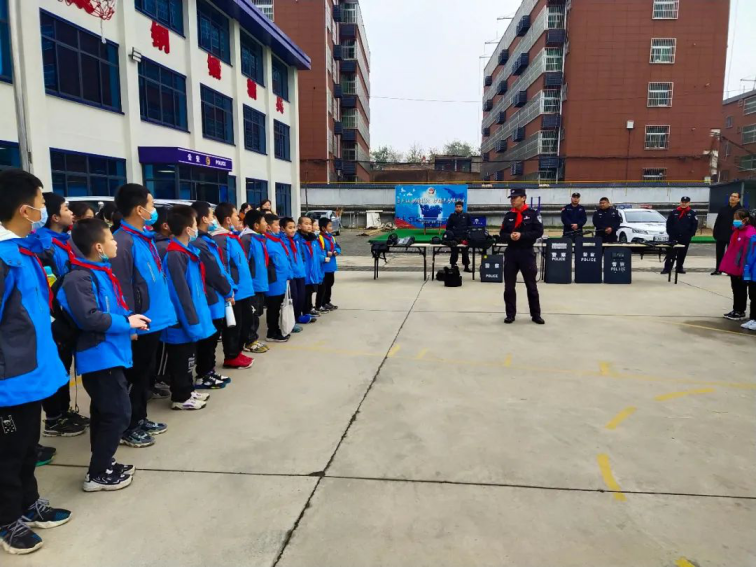 來到警營,公安閻良分局巡特警大隊教導員高德勝代表大隊全體警員干部講話,向師生介紹巡特警大隊的整體情況、職責任務,講述公安警察護佑人民平安的故事,寄語少年兒童努力學習知識和本領,將來能夠發揮特長報效祖國。