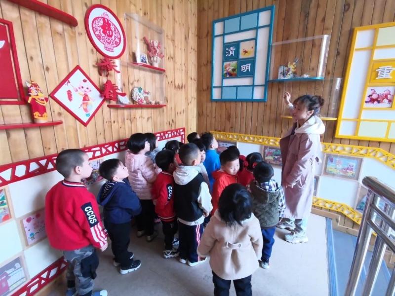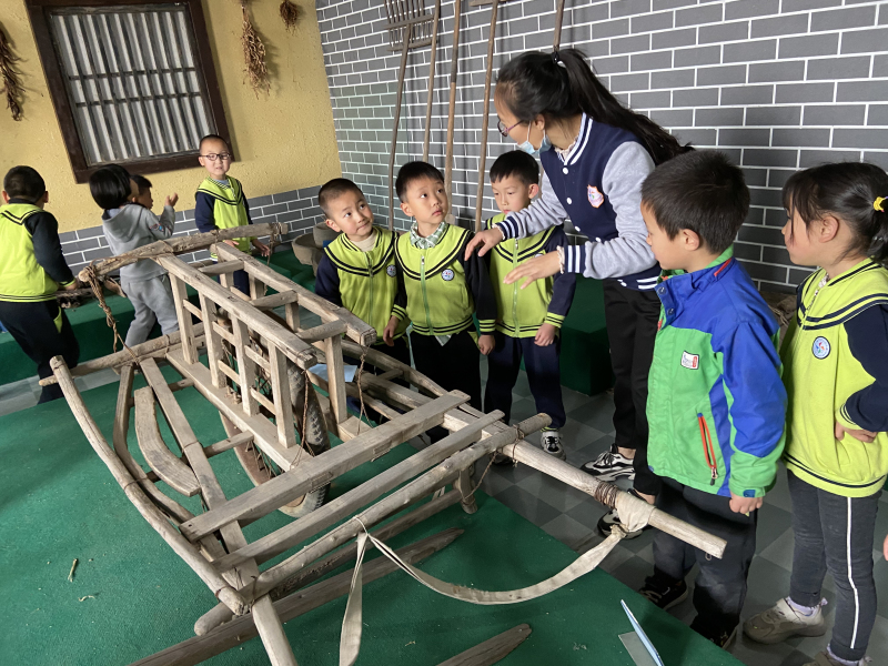 振興中心幼兒園組織幼兒前往譚家村山東文化民俗館,一件件傳統的工具映入眼簾。教師向幼兒介紹了獨輪車、紡車等工具的用途,講解山東遷徙文化,引導孩子們要飲水思源,從紅色文化中學習先輩的革命事跡。