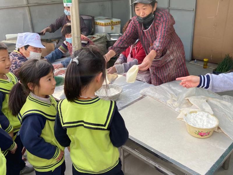 走出展館后,孩子們還參觀了山東大餅搟制過程,品嘗美食,參加蕩秋千、碰雞蛋畫雞蛋、趣味小推車等活動,了解本地清明節傳統風俗。