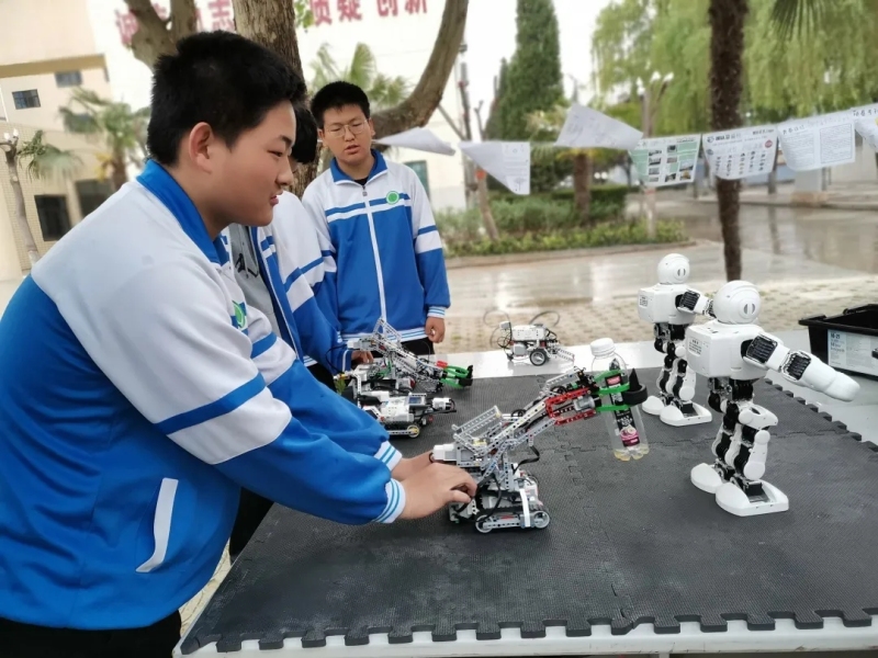 格斗機器人、十四運乒乓球陪練機器人、自動歸位打靶機、有機械手的多功能機器人、天蓬小車秀、直—9直升機飛機模型制作、波音—787飛機模型制作、“派鉑”飛機模型制作,這些來自學校思創機器人社團、科技制作社團、TNT機器人社團、科技實驗社團的課程成果,讓孩子們真切感受到科學就在身邊。