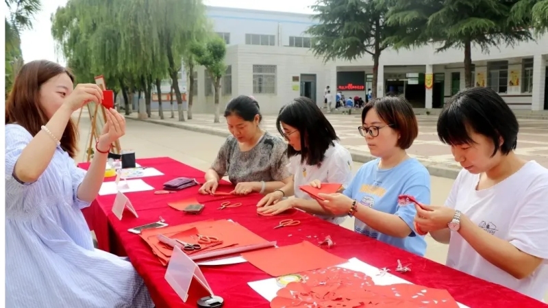 老師和同學們用自己的巧手,在一幅幅精美的剪紙、畫作中表達一心向黨的質樸情懷。