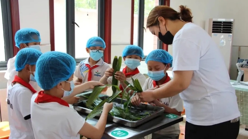 一陣陣粽香飄滿校園,通過這次活動,同學們不但學到了端午民俗知識,而且通過分工合作,懂得團結的重要性。