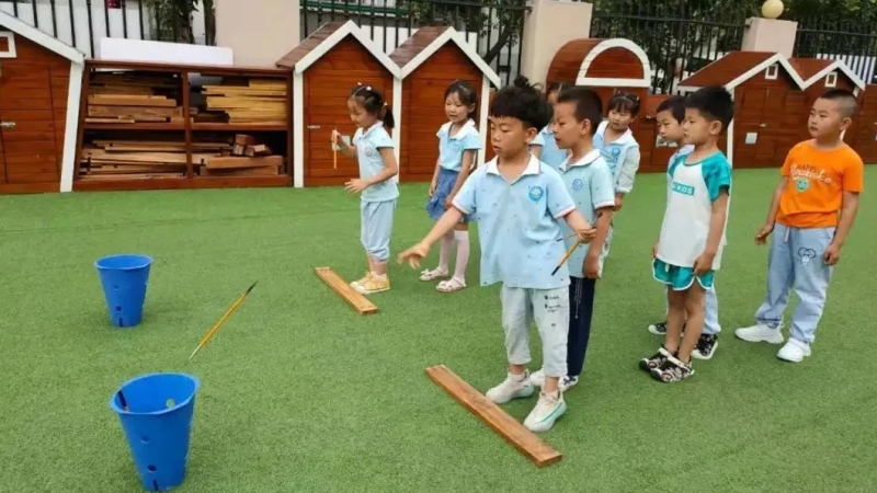 投壺是古人宴會時禮節性游戲,孩子們以矢代箭、以壺代侯,體驗具有射禮色彩的游戲活動。