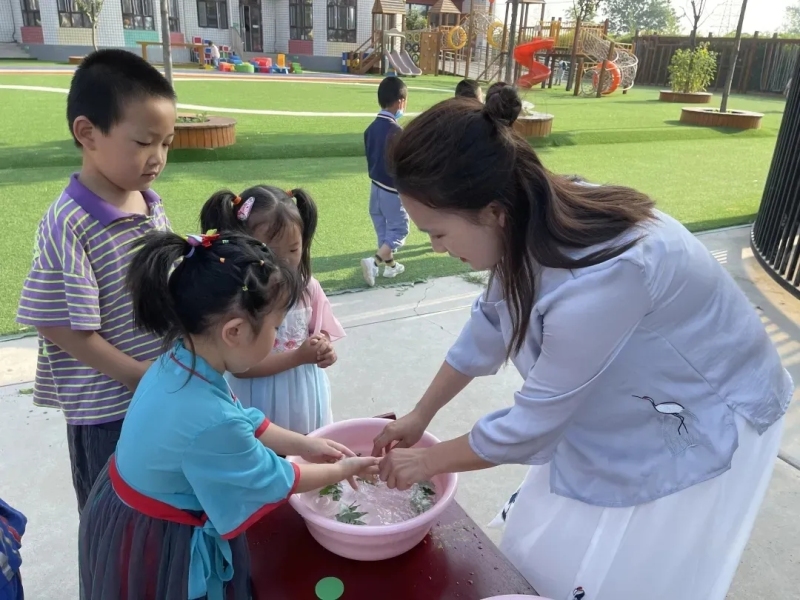 北屯幼兒園開展了一系列節慶主題教育活動。清晨,孩子們踩著帶露水的艾草進入校園,這種習俗在一些地方被稱為“打露水”,因為艾露可以驅蟲,所以此舉有祈福禳災的含義。