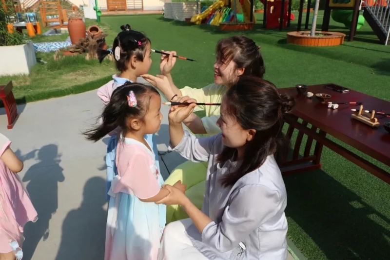 在古代,祛毒消災是端午節一項重要的活動。老師們在幼兒額頭上畫下“王”字圖樣,希望孩子們百病不侵,平安喜樂。小朋友們在老師的指導下,做出各種精美手工作品,表達自己對家人和朋友的祝福。