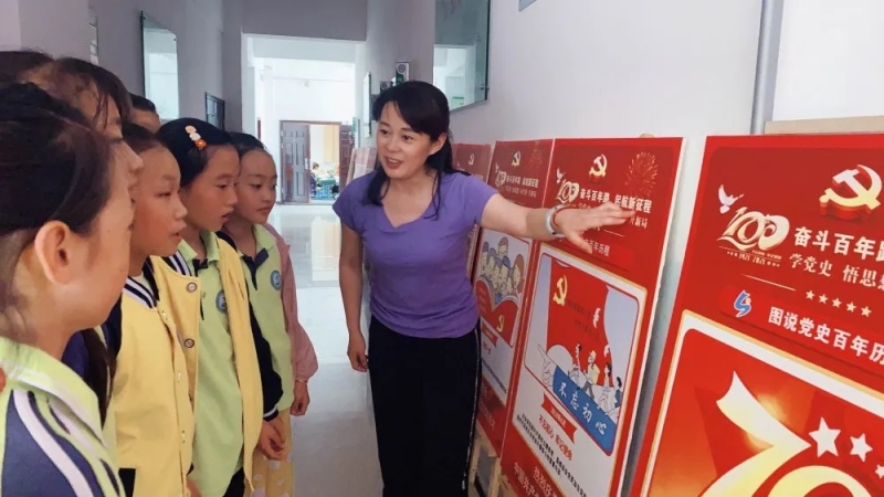 學校打造圖文并茂的黨史學習主題長廊,讓孩子們感悟中國共產黨領導中國人民進行不屈不撓的斗爭、實現民族解放以及國家建設振興中的豐功偉績,培養學生熱愛黨、熱愛社會主義祖國的情感。