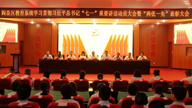 百年歷程鑄輝煌,百年華誕再啟程。7月16日,閻良區教育系統召開學習貫徹習近平總書記“七一”重要講話動員大會暨“兩優一先”表彰大會。局領導班子成員、各科室負責人,各中小學、幼兒園書記、校(園)長,事業單位主要負責人,黨員代表共200余人參加。區教育局黨委副書記張本利主持。