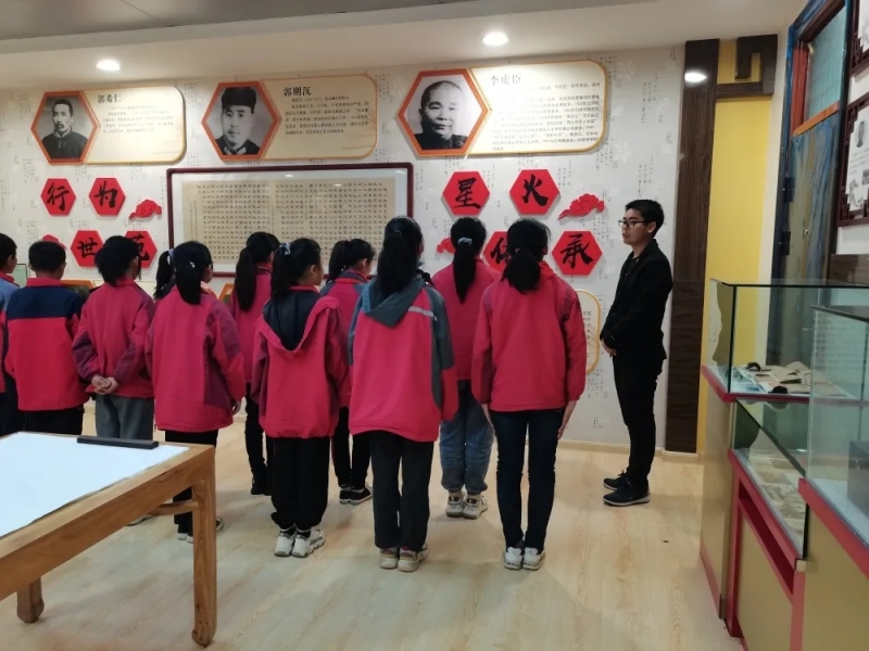 “同學們現在所看到的這面墻是我們校史館的名人墻。其中郭則沉先生曾參與“西安事變”與楊虎城將軍一起組織抗日救亡工作。”作為校史館講解員,陳興虎老師向少先隊員們講解著發生在學校里的革命故事。行為世范,星火傳承,作為新優質學校,有著深厚紅色文化底蘊的關山中心小學更是堅持講好學校故事,傳承紅色基因,以校史館為依托,大力開展黨史進校園活動,通過國旗下演講、黨史學習主題思政課等增強全體師生愛黨、愛國意識。