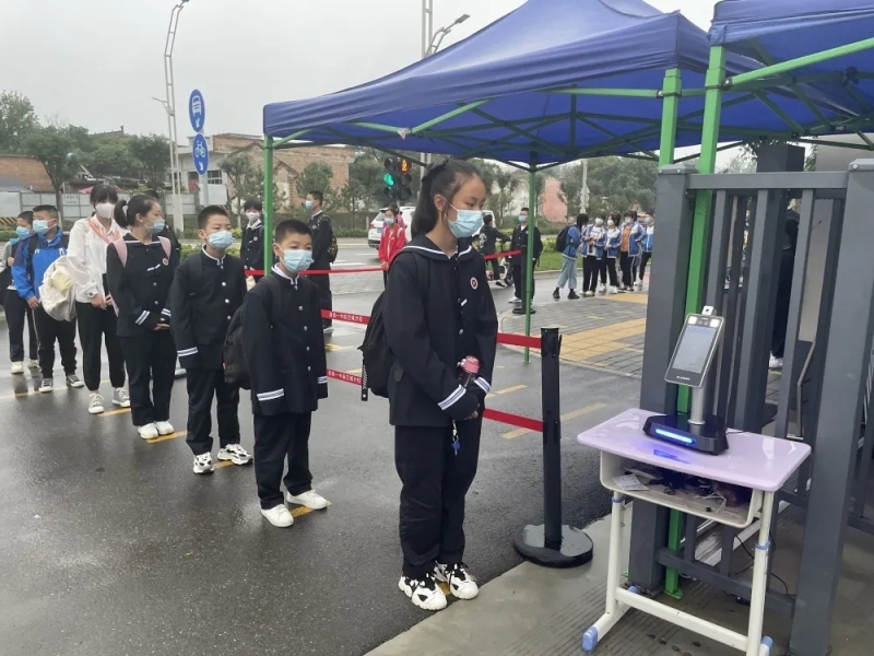 學生們嚴格落實測量體溫、佩戴口罩等措施,按照防疫要求錯峰排隊入校,過程井然有序。