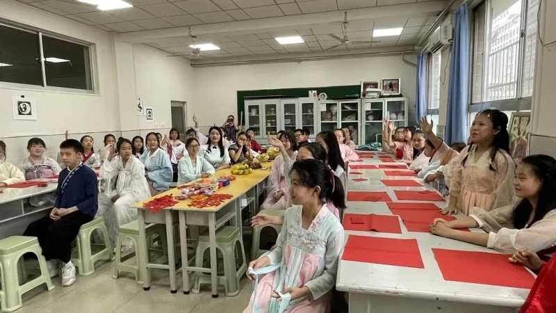 中秋節來臨之際,西飛二中武屯校區開展留守兒童關愛活動。同學們歡聚在一起品嘗精心準備的食物,聆聽教師講述中秋節起源,一起探尋中秋文化。同時,組織學生給遠方的家人打電話,送去節日的祝福。