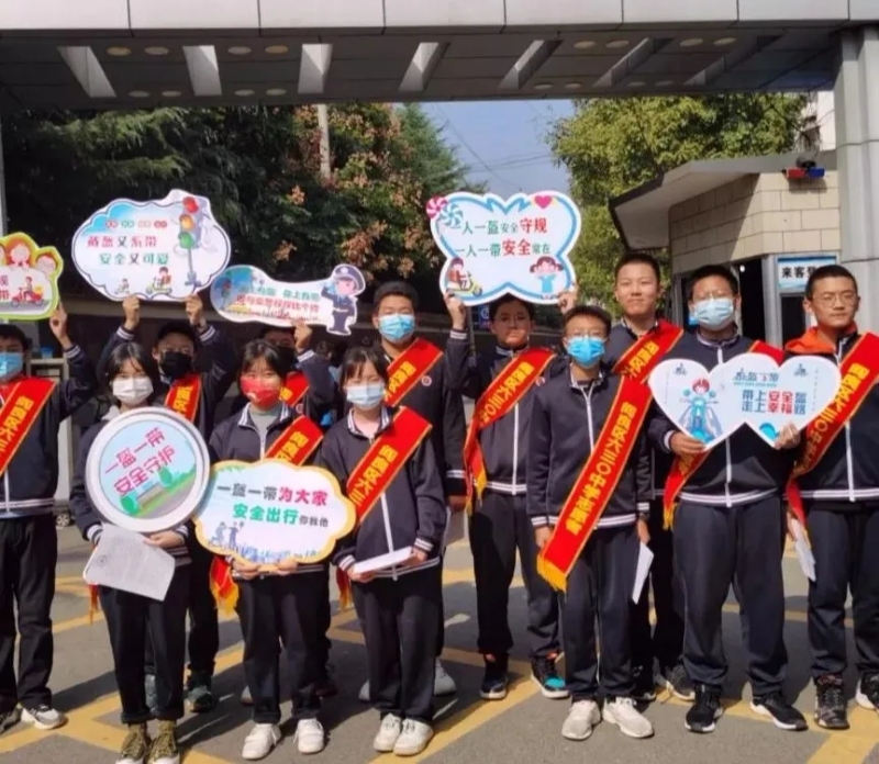 西安鐵一中航空城分校東校區“一盔一帶”交通安全宣傳活動