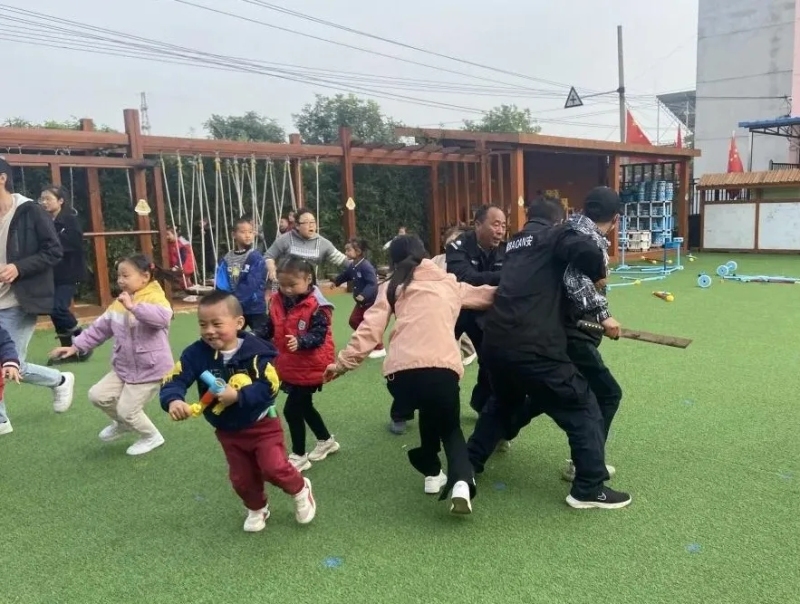 為進一步提高面對恐怖事件的自護自救及有效逃生避險能力,確保師幼在園人身安全,北屯中心幼兒園開展“反恐防暴安全應急演練”活動。教師通過圖片、視頻向幼兒講解在危險情況中如何自救逃生等相關安全知識后,演練實操活動開始啦。一名歹徒(由幼兒園中一名家長扮演)手持長刀闖入校園,巡視人員發現此情況立即啟動一鍵報警系統,迅速通知全體人員和上級部門,并與歹徒展開搏斗,最終在大家共同配合下將歹徒制服。演練結束后各班老師和家長針對幼兒生命安全進行交流,家長們肯定了此次活動的必要性和重要性,并表示會加強幼兒家庭安全教育。