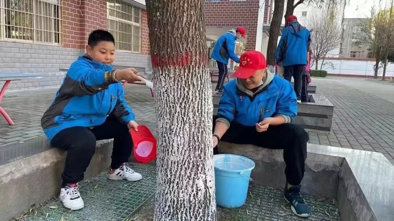 西飛二中團(tuán)委組織開(kāi)展了“冬季樹(shù)木‘穿新衣’ 刷樹(shù)護(hù)綠正當(dāng)時(shí)”志愿者勞動(dòng)實(shí)踐主題活動(dòng)。開(kāi)工之前,必要的科普知識(shí)不能少?!皹?shù)干涂白對(duì)寄生在樹(shù)干上的真菌、細(xì)菌有抑制作用,預(yù)防腐爛病,可以殺死樹(shù)皮內(nèi)越冬蟲(chóng)卵及蛀干害蟲(chóng),減少越冬蟲(chóng)源,提高樹(shù)木的抗病能力,同時(shí)可以提高抗寒能力?!蓖瑢W(xué)們拿起“畫(huà)筆”,為樹(shù)木穿起白裙,描摹了這個(gè)冬天優(yōu)雅的一筆。和灰、提桶、舉刷、涂抹,動(dòng)作個(gè)個(gè)嫻熟,以自己的實(shí)際行動(dòng)美化了校園,強(qiáng)健了體魄,踐行了“奉獻(xiàn) 團(tuán)結(jié) 互助 進(jìn)步”的志愿者精神。