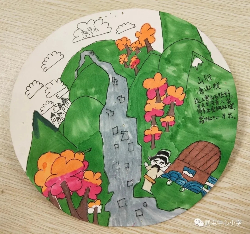 為增強學生學習古詩的興趣,體會古詩詞內涵,武屯中心小學語文教研組推廣特色作業——古詩配畫。學生通過富的想象,精彩紛呈的創意設計,將自己對古詩的理解流入筆端,匯入紙上,植入心間。每個孩子都是一位出色的小畫家,畫出屬于自己的作品,表達對詩歌的理解與喜愛。