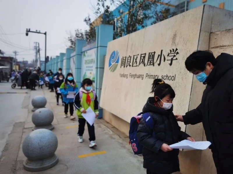 明媚的陽光與入學的喜悅相互交映,學生們按照規定時間來到校門口,保持一米距離,戴口罩、測體溫,嚴格落實各項疫情防控要求,有序入校。