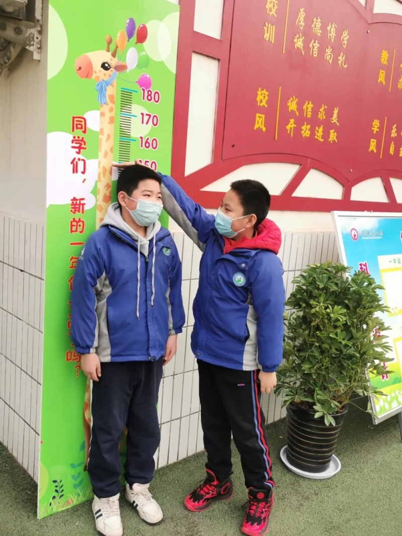 剛進入學校,西飛二小的兩位小朋友迫不及待的量身高。“入學我又長高了!”男孩兒興奮地分享。