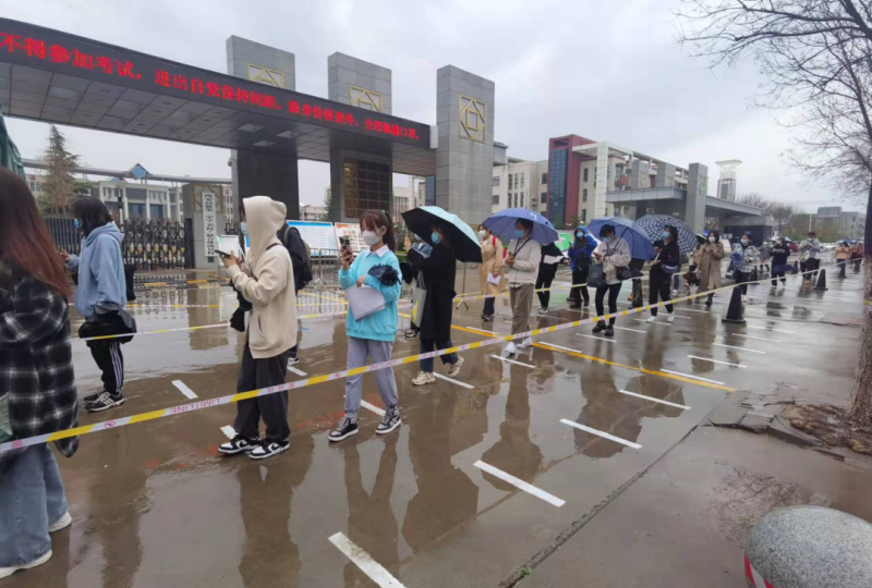 為實現健康考試、平安考試總體目標,切實保障廣大考生和考試工作人員的生命安全和身體健康,閻良區成立工作領導小組和工作專班,協調公安、衛健、交通、電信、城管、區疫情指揮部等部門,統籌安排考試組織保障和疫情防控工作。各考點嚴格按照疫情防控要求選聘監考和工作人員,進行14天體溫監測, 467名涉考人員全部于3月10日進行核酸檢測,衛健部門為每個考點選派防疫副主考,考試期間監考教師全程佩戴N95口罩。考前,考生掃碼(健康碼、行程碼非綠碼者不得入內)、測溫、提供48小時內核酸檢測陰性證明并通過身份驗證錯峰進入考點,同時上交健康承諾書,考生考試全程佩戴口罩。考試結束后,全體考生根據廣播統一指揮,按考場順序錯峰錯時進行核酸檢測后離場。