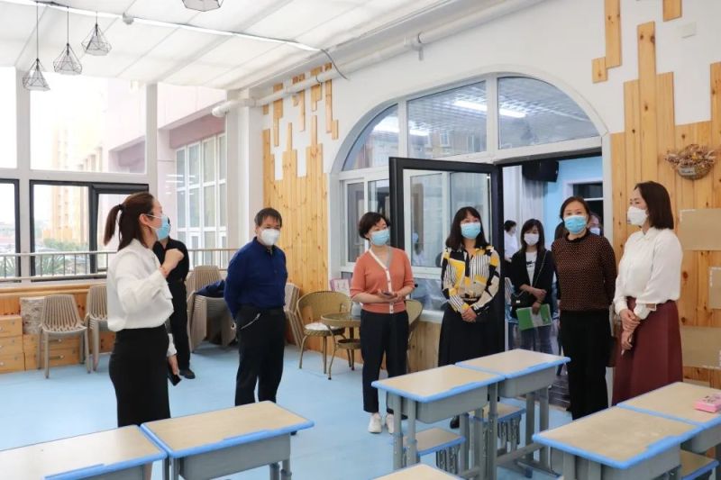 會后,與會人員參觀了小學模擬課堂,并提出合理性建議。