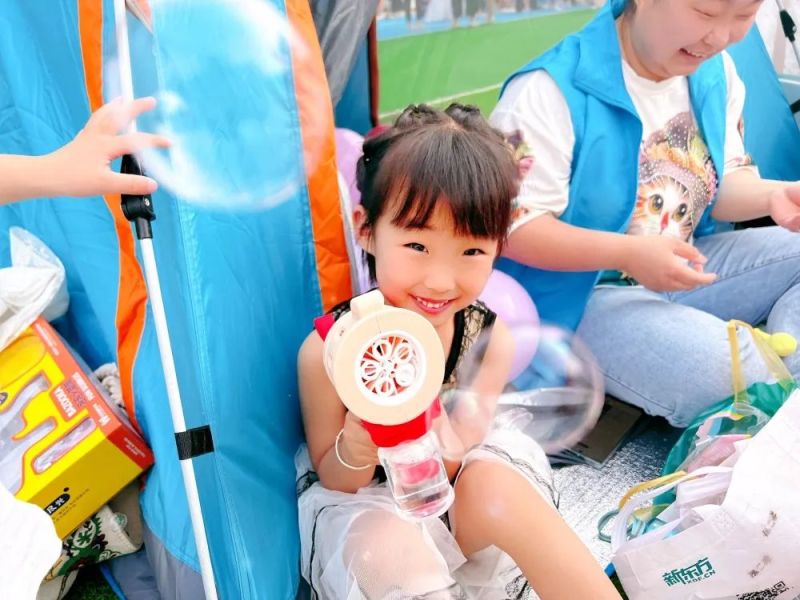 帳篷露營野餐活動,小朋友們換上漂亮的衣服,支起帳篷,寬敞的操場是絕佳的露營地,藍天白云、溫暖的陽光,風中微微搖曳的彩色氣球滿滿的儀式感,藏著童年最簡單的快樂。