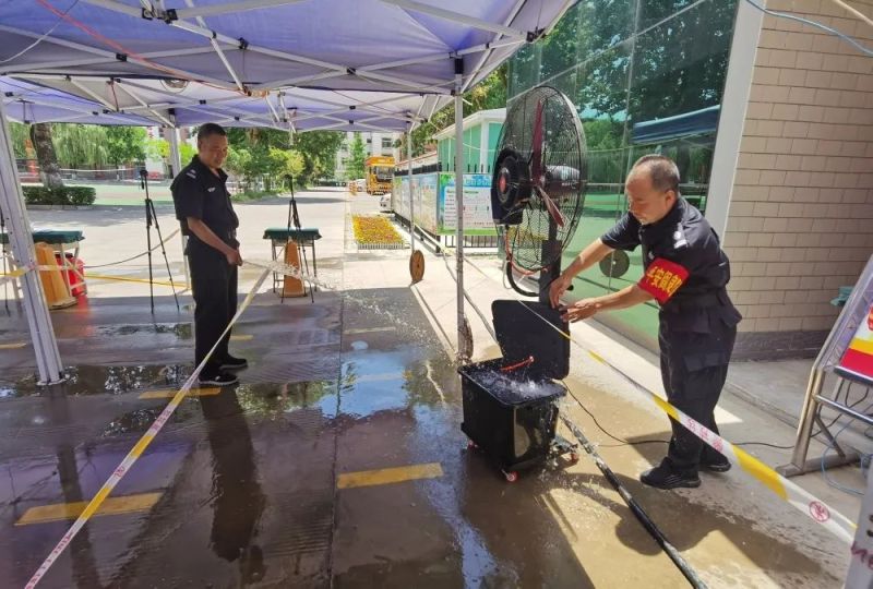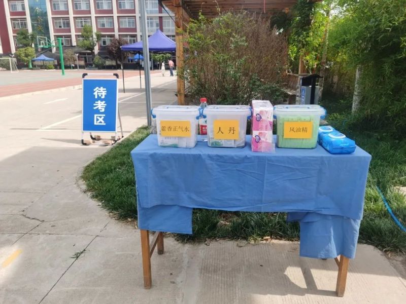 考試期間,正值持續高溫天氣,各考點為考生候考及待考區搭建遮陽棚及風扇進行降溫,提前打開考場空調,配備常用防暑及應急藥品,營造舒適的考試環境。