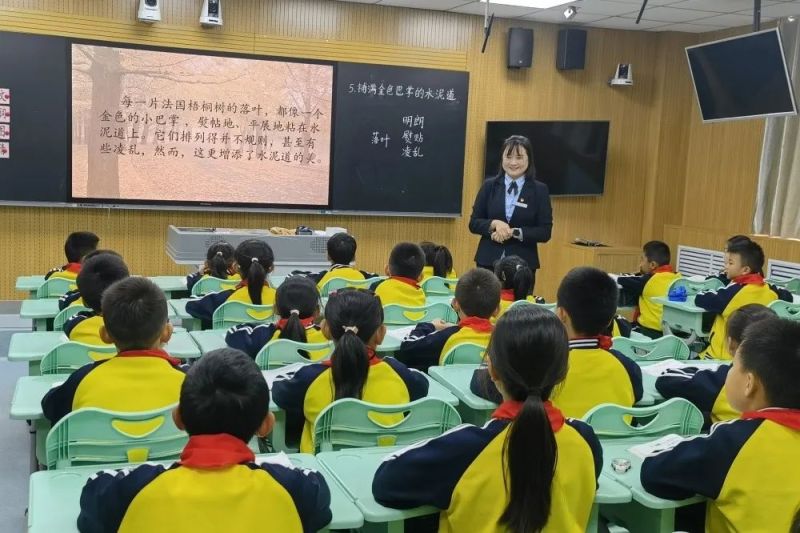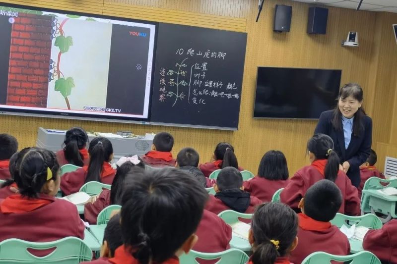 市教學能手簡淑娟、區教學能手武琳分別帶來課堂《爬山虎的腳》《鋪滿金色巴掌的水泥道》,通過語文大單元整合教學,展示了自己探索基于學科核心素養、指向深度學習的課堂教學改革。體育教師柳靜執教三年級《立定跳遠》,以游戲展開教學,課堂氣氛活躍,達到了鍛煉強度,用青春活力展示了學校“五育”并舉的課堂一角。