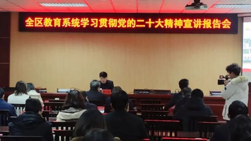 報告會要求,全區教育系統要切實提高政治站位,把學習貫徹黨的二十大精神作為當前和今后一個時期一項重大政治任務和頭等大事,認真安排部署,周密組織實施。要統籌各方資源,主動講好教育故事、積極傳遞教育聲音,開展全方位、多形式宣講,建好黨的二十大精神宣講“好課堂”,將貫徹落實黨的二十大精神的熱情轉化為支持教育改革發展的強大動能。要把學習貫徹黨的二十大精神與全區教育工作緊密結合起來,用黨的二十大精神統領教育教學、校園安全等重點工作,扎實開展教育系統作風建設專項行動,以一流作風做出一流的業績,用實際行動踐行“為黨育人、為國育才”初心使命。