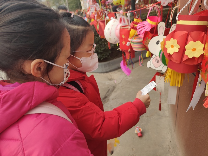 恰逢元宵佳節(jié),各式各樣的“萌”兔元素充滿了西飛一小校園,校門口擺放的大鼓、橙子、蘋果、爆米花、棒棒糖等物品蘊(yùn)藏著老師對(duì)孩子們深深地祝福,希望孩子們新學(xué)期“一鳴驚人”“平平安安”“學(xué)習(xí)棒棒”“馬到成功”“生活開花”;學(xué)校還布置了有趣的猜燈謎活動(dòng),猜中的孩子可以兌換精美的小禮物,感受濃濃節(jié)日氛圍。