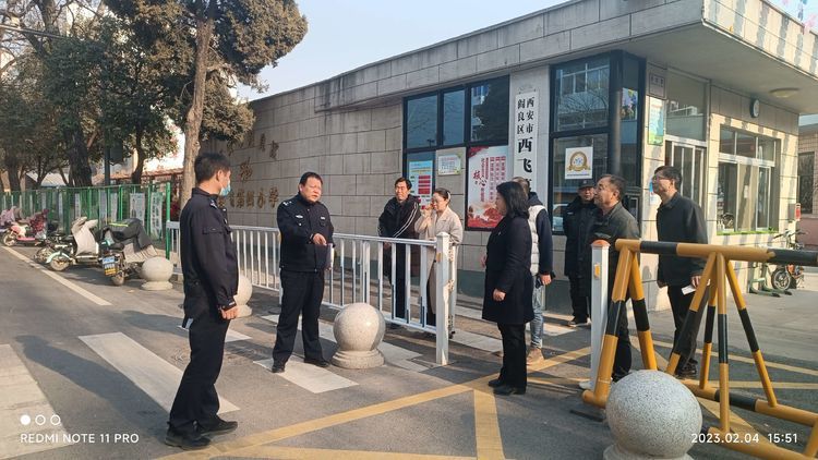 區(qū)交警大隊(duì)大隊(duì)長(zhǎng)潘軍峰、教導(dǎo)員惠建鋒走進(jìn)西飛四小,就落實(shí)“一校一交警”工作進(jìn)行檢查,對(duì)校園內(nèi)學(xué)生通道、上下學(xué)期間交通安全、標(biāo)志標(biāo)線設(shè)置等提出科學(xué)建議。