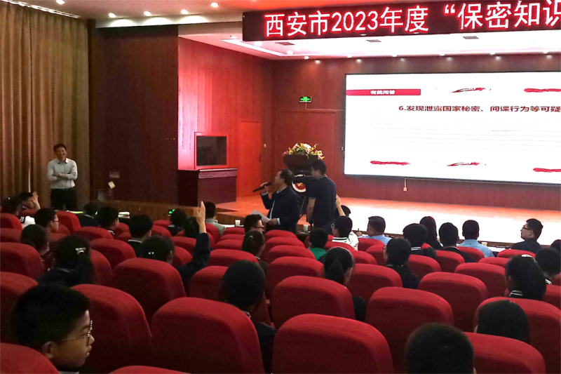 區國家保密局局長蘇新友為學生作《講述保密故事,傳承紅色基因》知識講座,講述了老一輩革命家保守秘密的故事,并結合閻良區保密工作實際、身邊人身邊事等就如何做好保密提出了具體要求,有效提高學生的保密意識?;顒蝇F場還進行了保密知識有獎問答,學生們積極參與,踴躍答題。