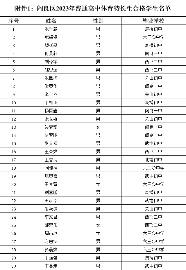 1.閻良區2023年普通高中體育特長生合格學生名單