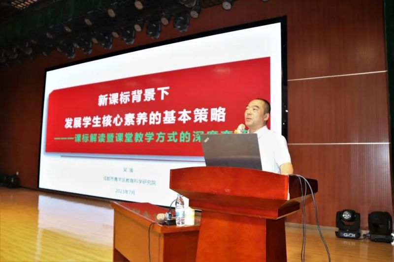 成都市青羊區教育科學研究院中學教育研究所所長吳強作《新課標背景下發展學生核心素養的基本策略——課標解讀及課堂教學方式的深度變革》報告,以生物學科為例詳細解讀新課標中教學理念、教學內容、 教學目標、教學方式改革。并深入闡述了如何在課堂教學中培養學生的核心素養,讓新課標有效落地。既有理論的解讀,又有實踐的指導,解決了一線教師在新課標實施過程中遇到的困惑。