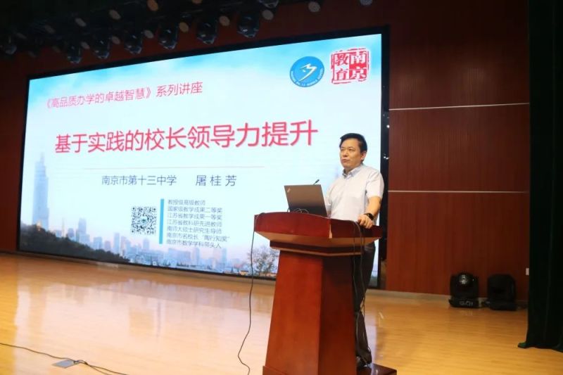 “校長是一個學校的靈魂。”南京十三中教育集團理事長屠桂芳作《基于實踐的校長領導力提升》報告。他從規劃學校發展、營造育人文化、領導課程教學、引領教師成長、優化內部管理、調適外部環境等六個方面,結合12個生動案例全方位解讀了專家型校長的成長路徑,提出校長要做教育管理的明白人,團隊建設的引領者和品質辦學的實踐家。