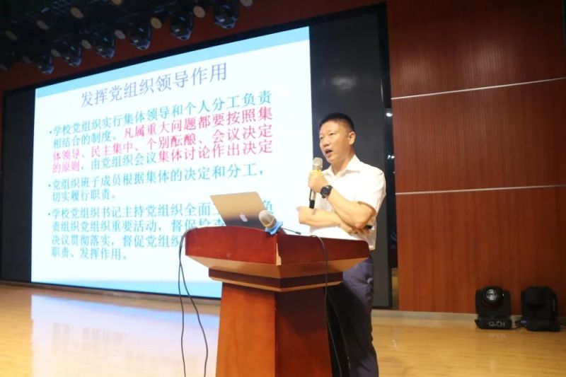 江蘇省中學特級教師汪寧帶來《學校黨建的基本要求與實踐思考》報告,圍繞黨建工作的基本要求、黨建與業務工作的深度融合、黨務干部的素質能力及工作方法、中小學黨建工作文化作用發揮等方面向參訓人員闡釋了學校如何發揮黨組織領導作用,講述了黨建與業務融合間的三種狀態,隨后深度剖析了文化的凝聚、激勵和引導作用,強調要以高質量文化活動助推學校黨建工作。