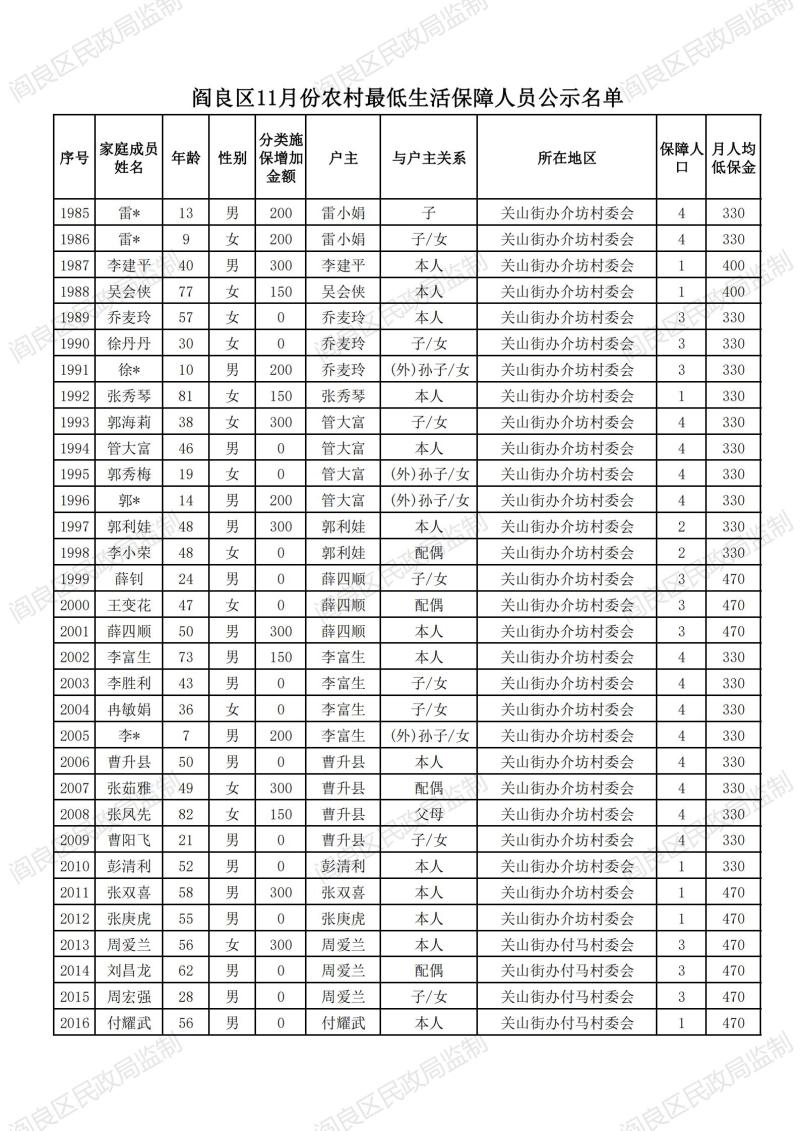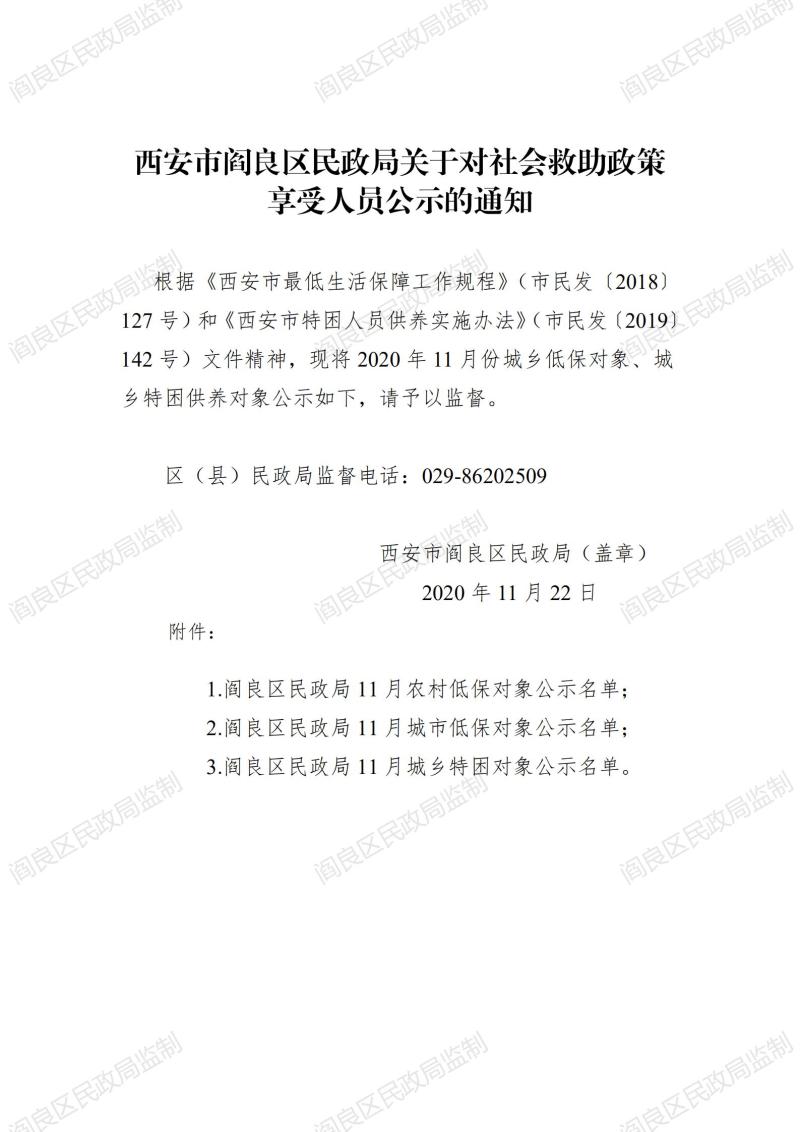 西安市閻良區民政局關于對社會救助政策享受人員公示的通知