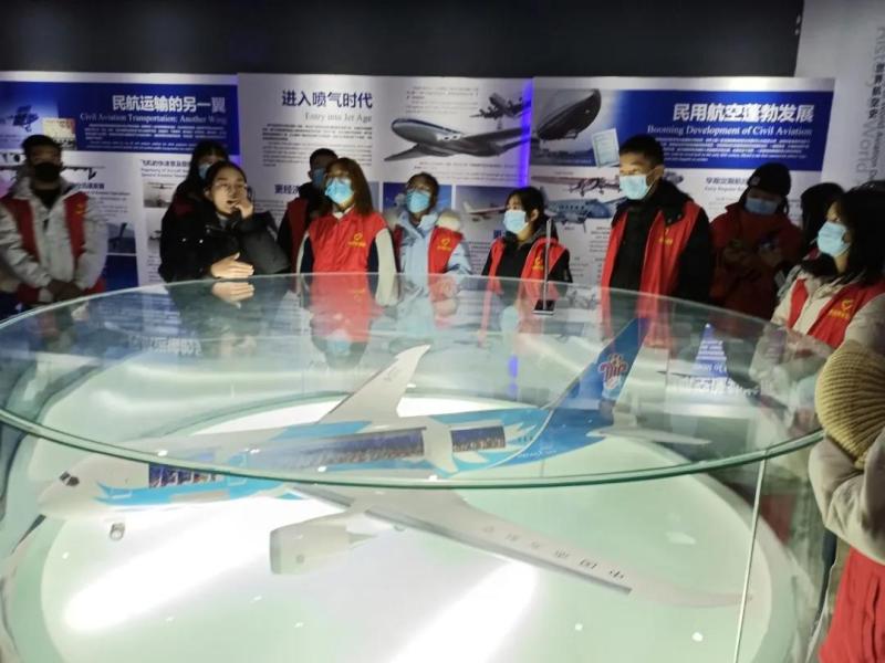 參觀了飛機(jī)模型和發(fā)動(dòng)機(jī)等航空器械