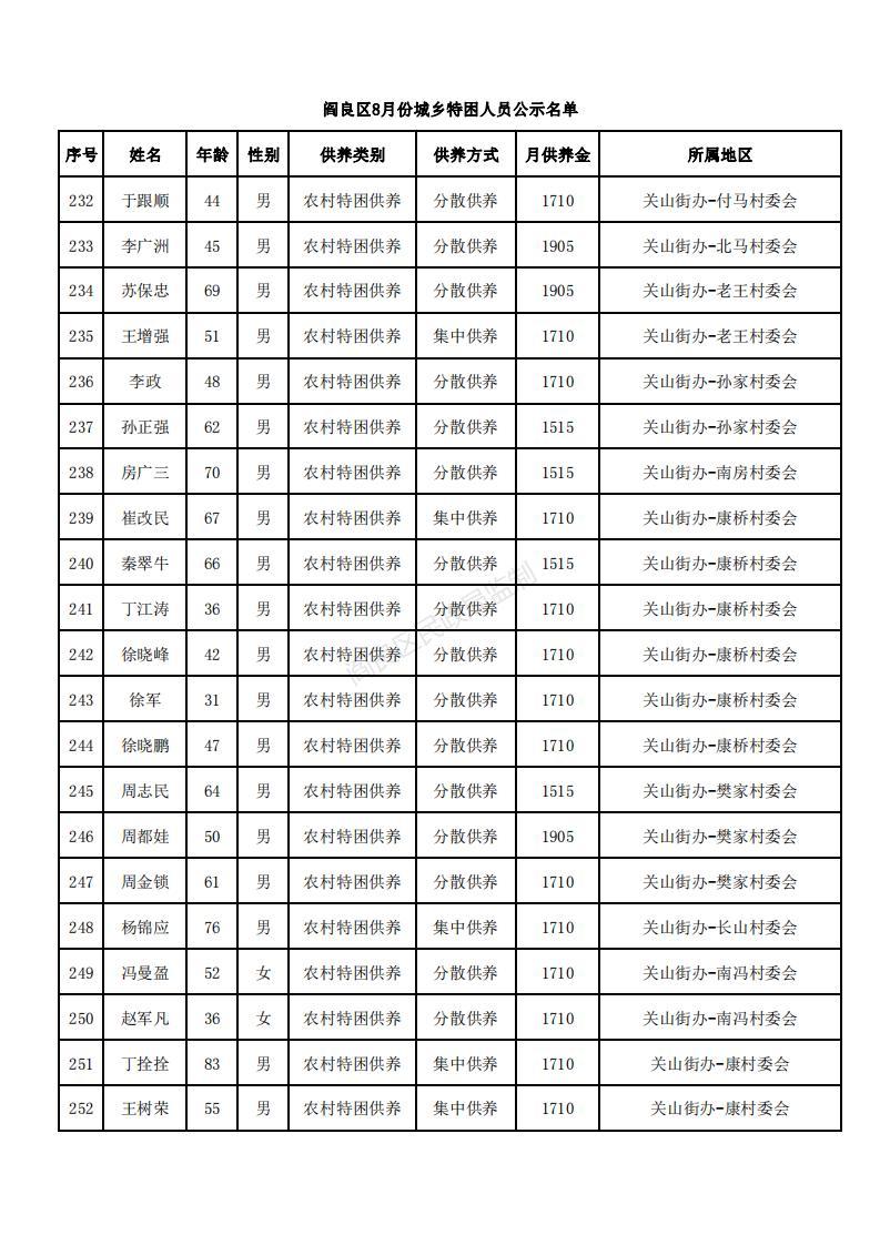 閻良區民政局關于對8月份社會救助享受人員進行公示的通知