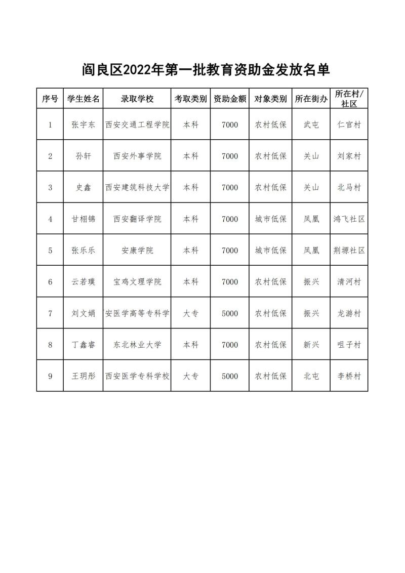 閻良區民政局關于對2022年第一批教育資助金享受人員公示的通知