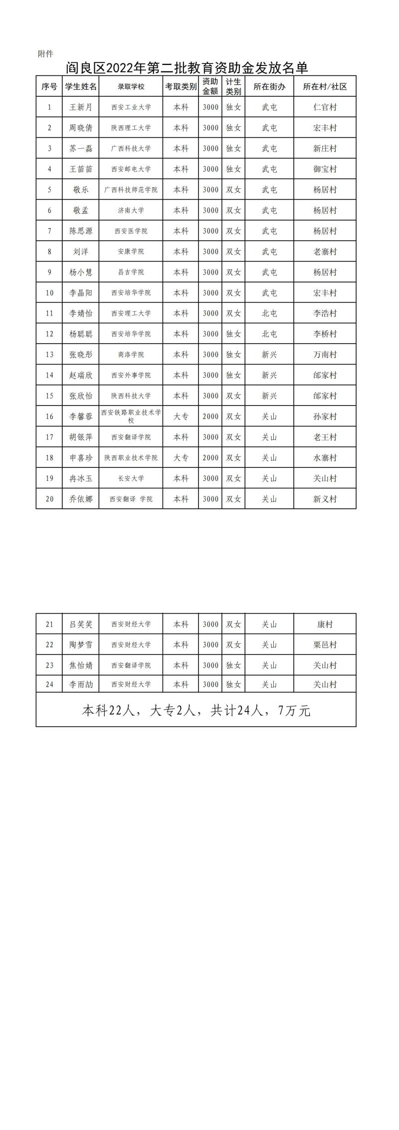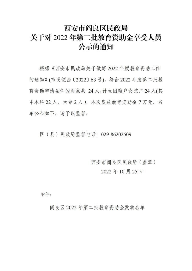 閻良區民政局關于對2022年第二批教育資助金享受人員公示的通知
