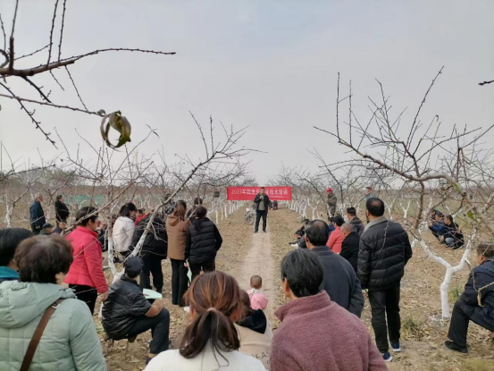 此次培訓在閻良區新華路繩張村桃園舉辦。為了提高培訓效果,11月21日上午,市專家團提前在新興邰家村、新華路繩張村,對不同樹齡園區進行了實地調研,了解群眾生產管理中存在的問題,梳理出冬剪整形、樹干涂白、冬季清園、基肥施用、品種更新等5個方面9個具體問題,培訓現場有針對性的對這些問題,從理論到實際操作進行了詳細講解。對冬季修剪進行了現場示范。解答了群眾在冬剪中留枝量、留枝位置、修剪反應、對樹形的影響、清園藥劑選擇及使用操作等問題。培訓現場,群眾積極提問、專家細致解答,學習氛圍濃烈,培訓取得了預期效果。