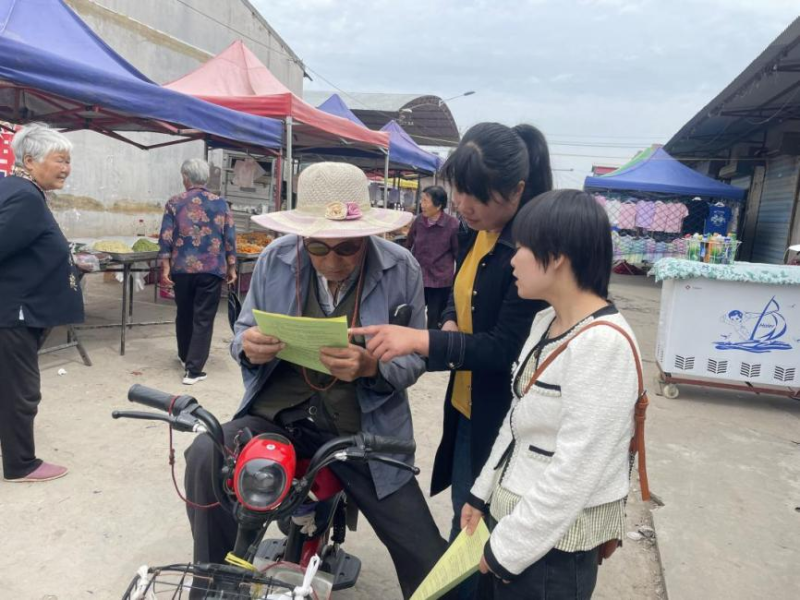 工作人員通過懸掛橫幅、現場發放宣傳單和宣傳手冊、解答群眾問題等方式進行普法宣傳。
