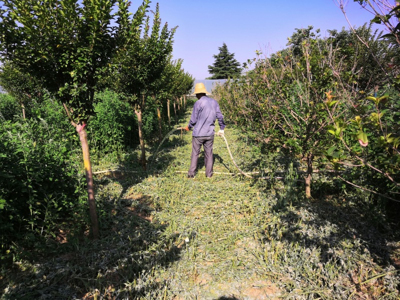 2023年端午節期間,閻良區林技中心對試驗田苗木進行管護。“除草、打藥、澆水”一氣呵成,針對即將到來的高溫,結合打藥,添加了蒸騰抑制劑,在苗木葉片表面形成一層保護膜,減少葉面水分的蒸騰;針對前一段時間雨水多的情況,結合澆水,添加了國光殺菌劑,減少土壤中有害物質含量,促進作物根系生長;另外借鑒果園生草的理念,這次沒有把草全部除完,而是留了一部分草,一是可以減少除草費用,二是可以降低地表溫度,三是可以提高空氣濕度,形成小氣候,助力苗木順利迎接“烤”驗。