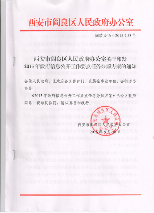 (二)信息公開重點工作落實情況。閻良區(qū)結(jié)合本區(qū)實際研究制定了《西安市閻良區(qū)人民政府辦公室關(guān)于印發(fā)2015年政府信息公開工作要點任務(wù)分解方案的通知》(閻政辦函〔2015〕53號),對推進(jìn)重點領(lǐng)域信息公開等工作進(jìn)行安排部署,明確工作進(jìn)度,強(qiáng)化督促檢查,確保各項工作任務(wù)圓滿完成。