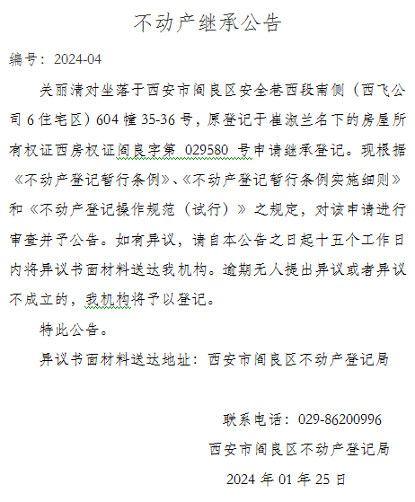不動產繼承公告 編號:2024-04