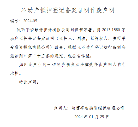 不動產抵押登記備案證明作廢聲明 編號:2024-05