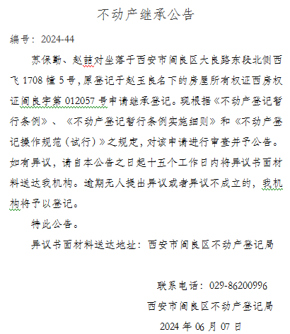 不動(dòng)產(chǎn)繼承公告 編號(hào):2024-44