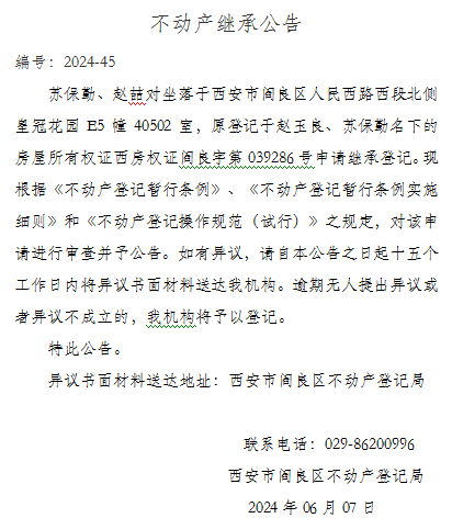 不動(dòng)產(chǎn)繼承公告 編號(hào):2024-45