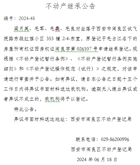 不動(dòng)產(chǎn)繼承公告 編號(hào):2024-48