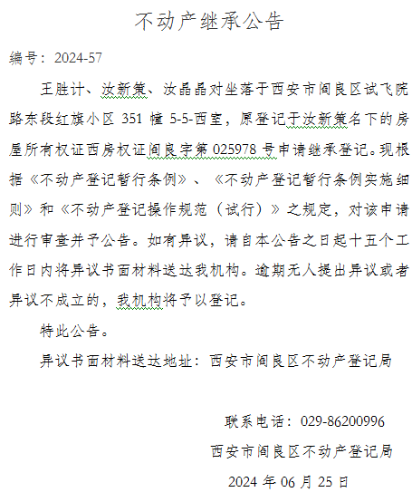 不動(dòng)產(chǎn)繼承公告 編號(hào):2024-57