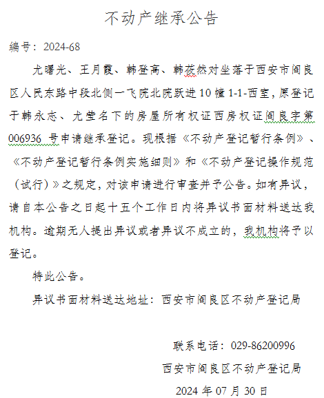 不動(dòng)產(chǎn)繼承公告 編號(hào):2024-68